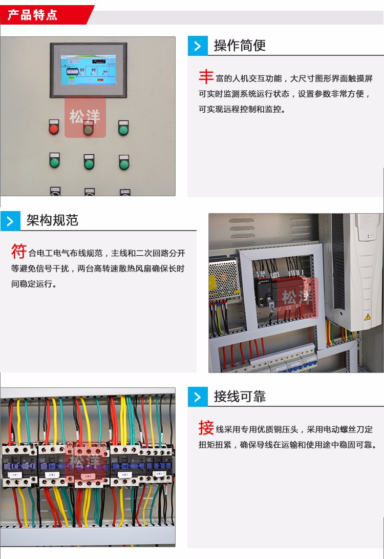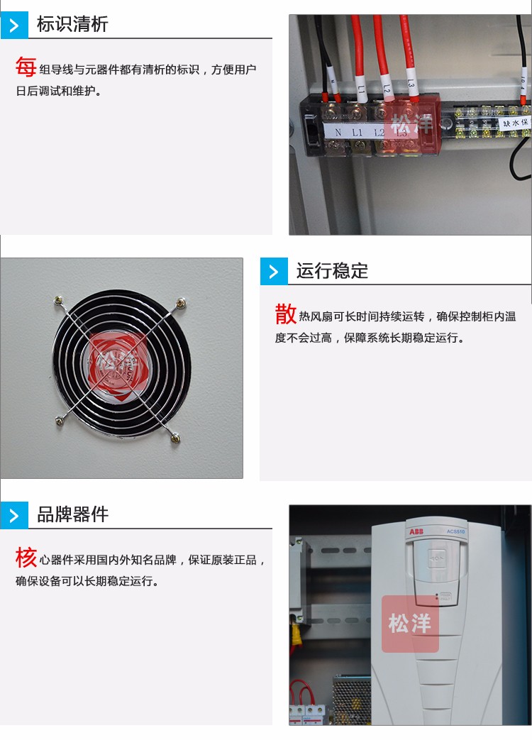 水泵控制柜具有過(guò)載、短路、缺相保護(hù)以及泵體漏水,電機(jī)超溫及漏電等多種保護(hù)功能及齊全的狀態(tài)顯示,并具備單泵及多泵控制工作模式,多種主備泵切換方式及各類起動(dòng)方式??蓮V泛適用于工農(nóng)業(yè)生產(chǎn)及各類建筑的給水、排水、消防、噴淋管網(wǎng)增壓以及暖通空調(diào)冷熱水循環(huán)等多種場(chǎng)合的水泵自動(dòng)控制。